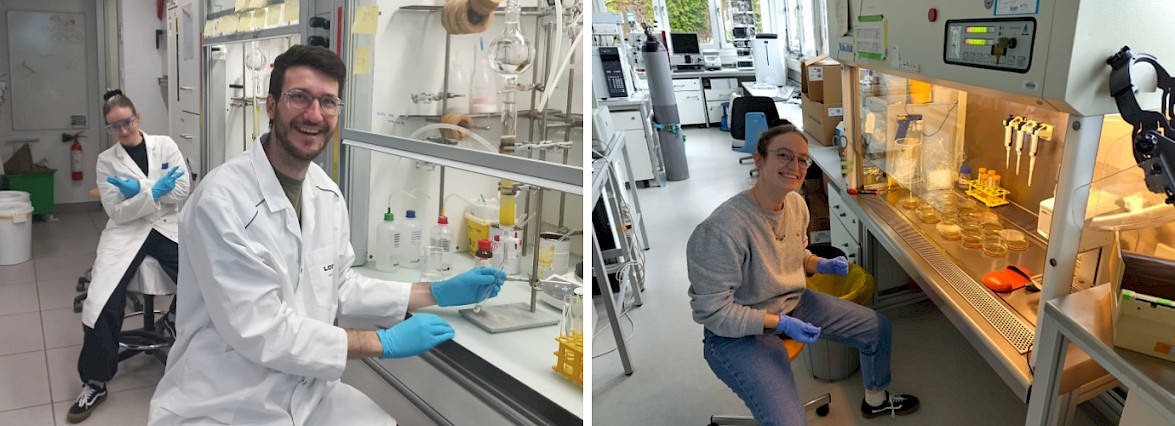 Adriana and Nicolas in the Morandi lab at ETHZ (left), and Adriana in the Buller lab at ZHAW (right).